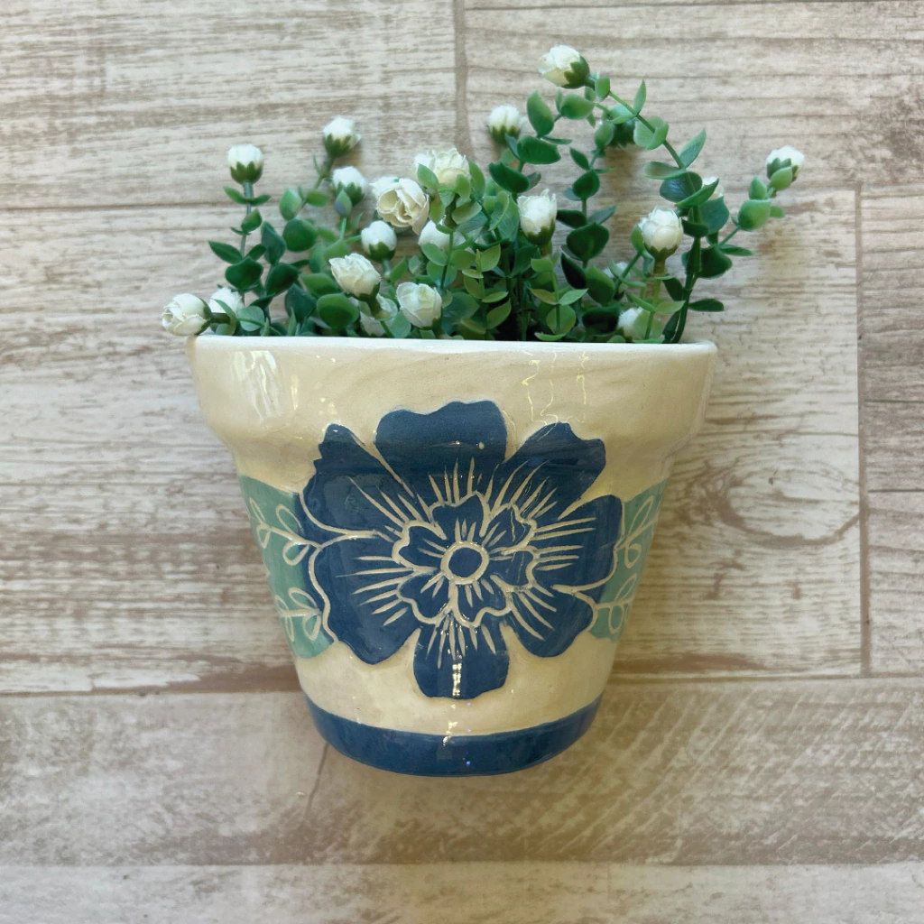 Macetas de pared en cerámica con dos perforaciones para colgar.