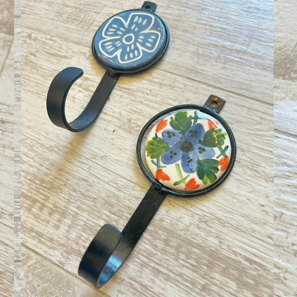 Percheros individuales realizados en hierro decorados con una placa cerámica