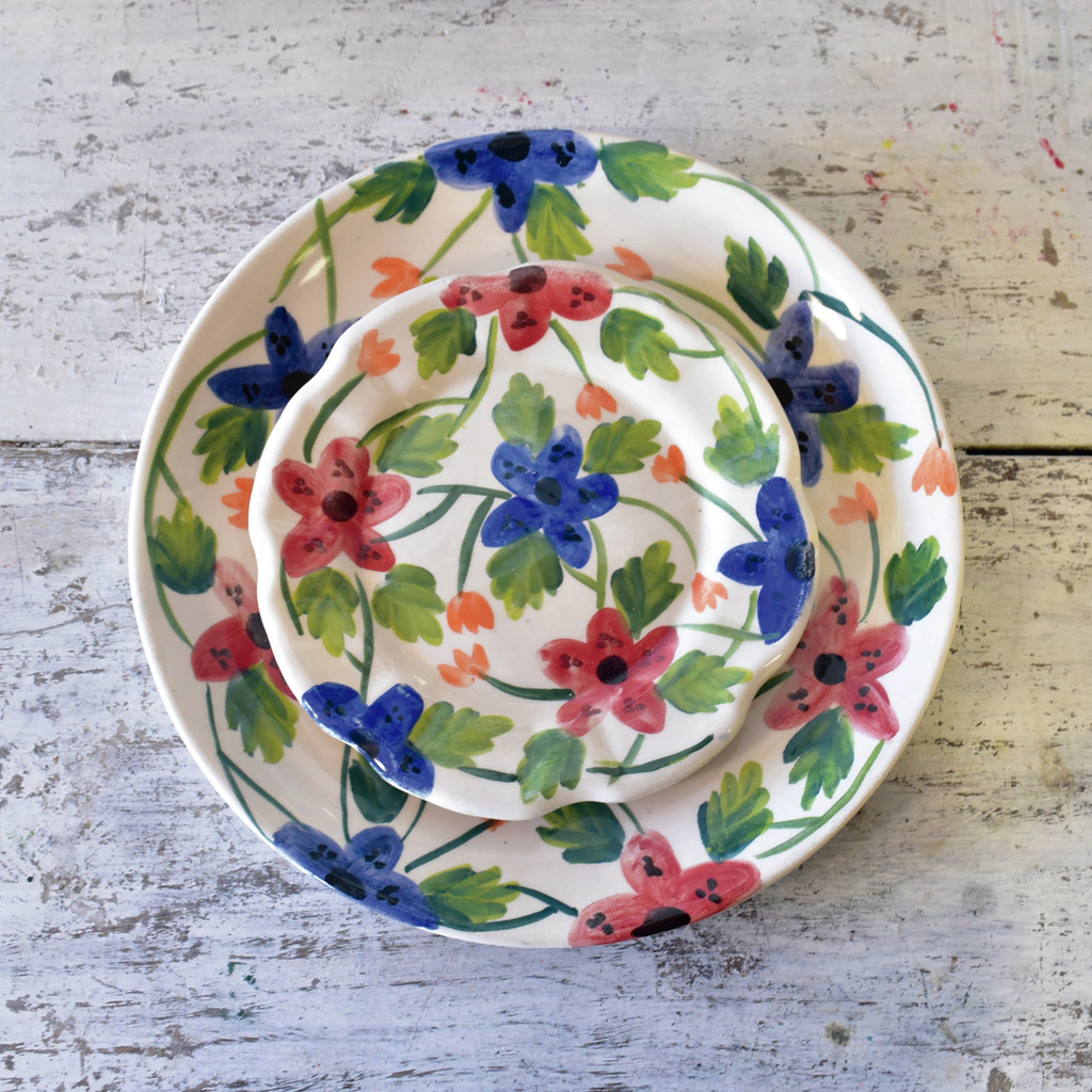 contiene 6 unidades de platos con estilo Esgrafiado.