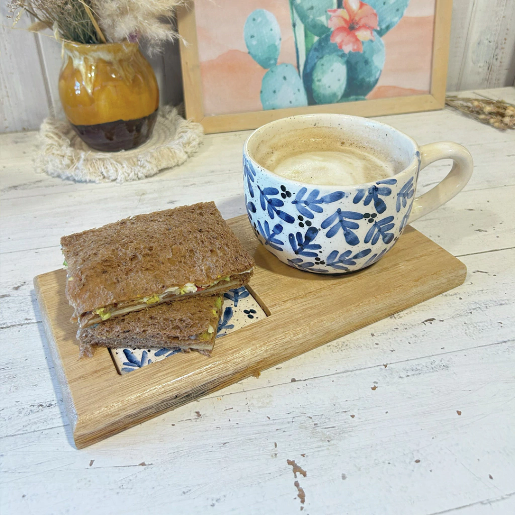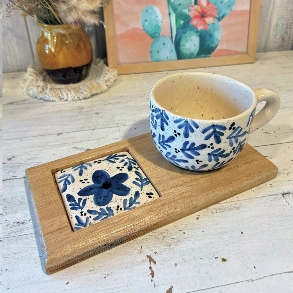 La bandeja de Madera viene con un aplique en ceramica, para uso cotidiando, podes lavarla sin problema y combinarla con el diseño de taza, tazon o mate que mas te guste.